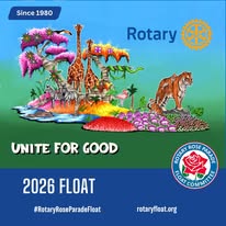 Rotary Rose Parade Float Committee: "Even though we did not win an award at this year's Rose Parade, our float was a true triumph that indicates what happens when we come together to 'Unite for Good.' It's beauty did not come from a trophy, but from the countless hands that lovingly brought it to life. From the dedication of our Rotarians, to the craftsmanship of Phoenix Decorating Company, to the tireless decorators and generous sponsors who believed in the vision - this float was a reflection of community, passion and heart. A real win is in the 'Magic of Teamwork.' "